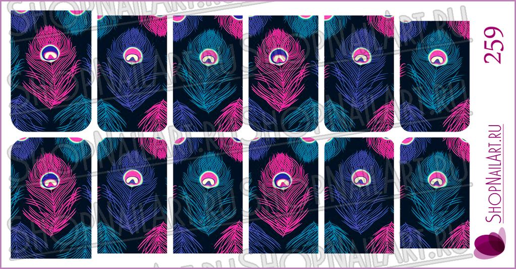Слайдер-дизайн 259 - Синие, голубые, розовые перья павлина