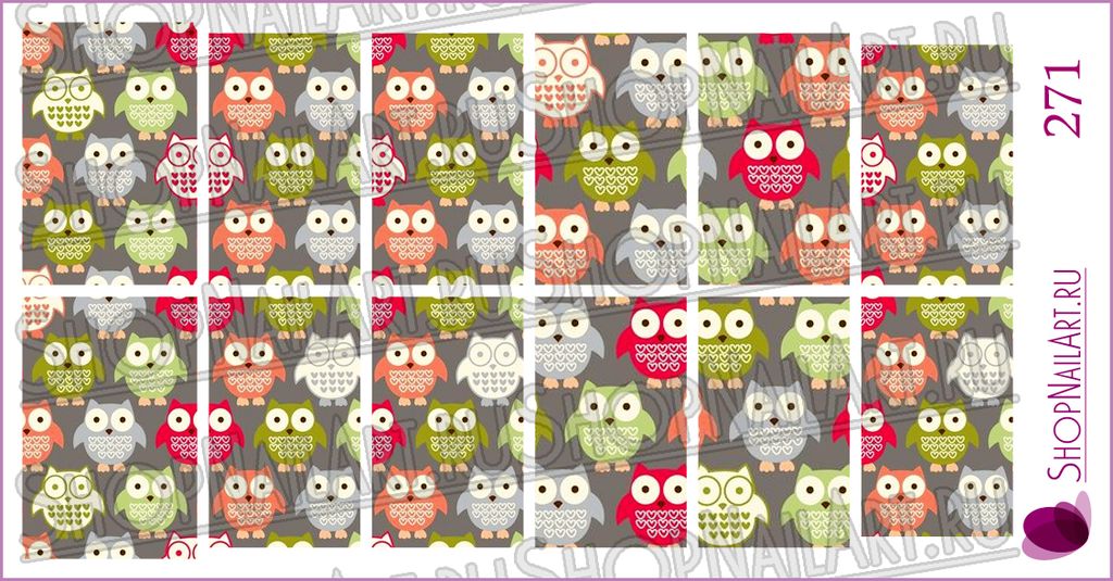 Слайдер дизайн 271 - Разноцветные совы на сером фоне