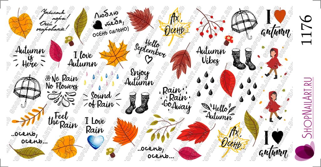 Слайдер-дизайн 1176 - Осень, надписи, дождь, листья